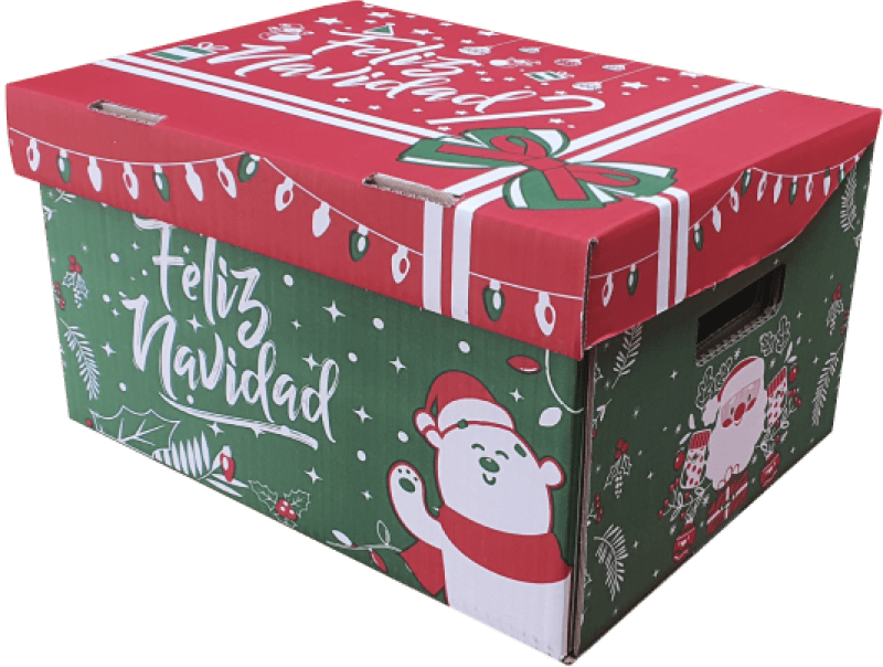 Especificaciones de la Caja: Cajas Navideñas (KRAFT // Verde Oso Polar) – Ext. 28x41x23 (Int. 29.5x37x 21)