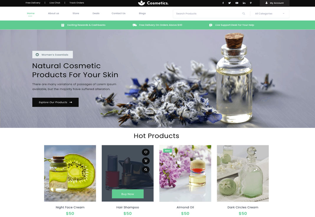 Estructura clara y funcional: Incluye página principal (homepage) que presenta el negocio y sus ofertas, páginas de producto con detalles claros, carrito de compras y página de pago segura.